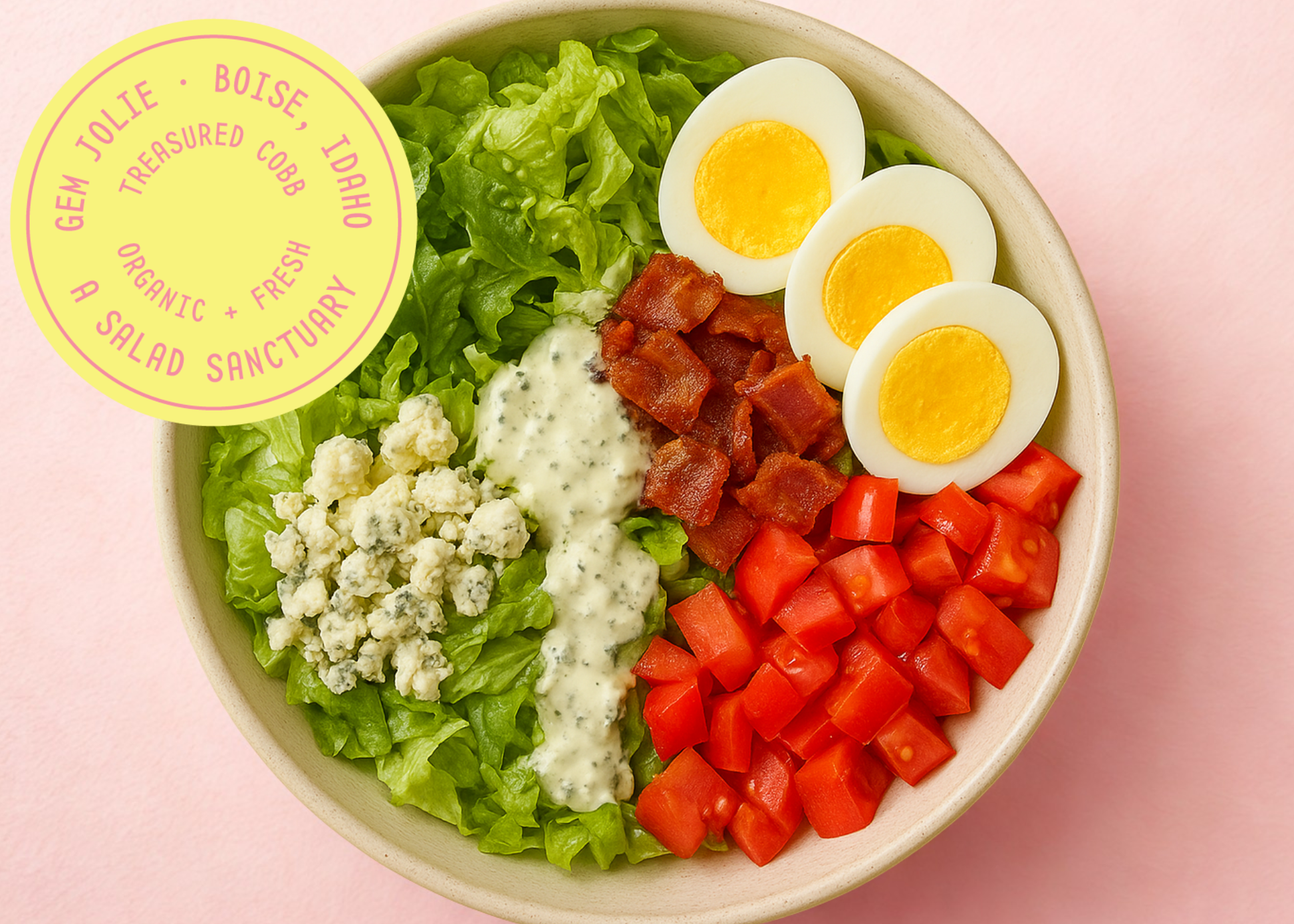 A sparkling twist on a classic Cobb. Layers of iceberg and romaine are piled with juicy tomatoes, hard-boiled egg, smoky locally sourced Farmstead bacon, and tangy blue cheese, all draped in our housemade, succulent Dill-Ranch dressing. Familiar, bold, and always delicious, this is one salad people can't stop talking about.